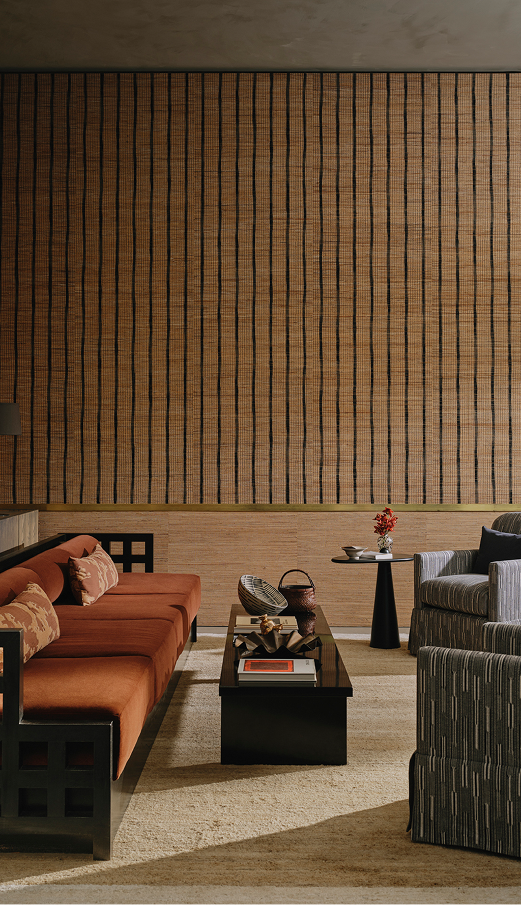 The new Duna wallcoverings collection introduces texture and pattern to walls, embodying the signature natural aesthetic of Larsen.